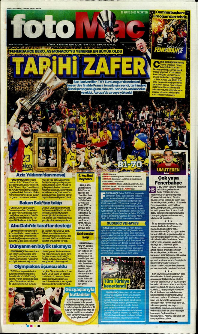 Avrupa'nın en büyüğü Fener | Spor basını ne yazdı?