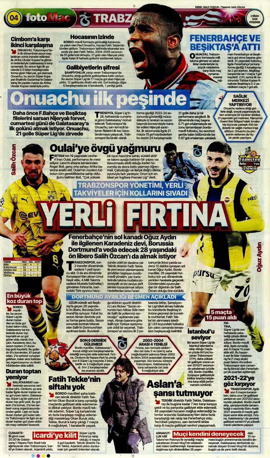 Bırakmam seni! Spor basını bugün ne yazdı? (2 Nisan)