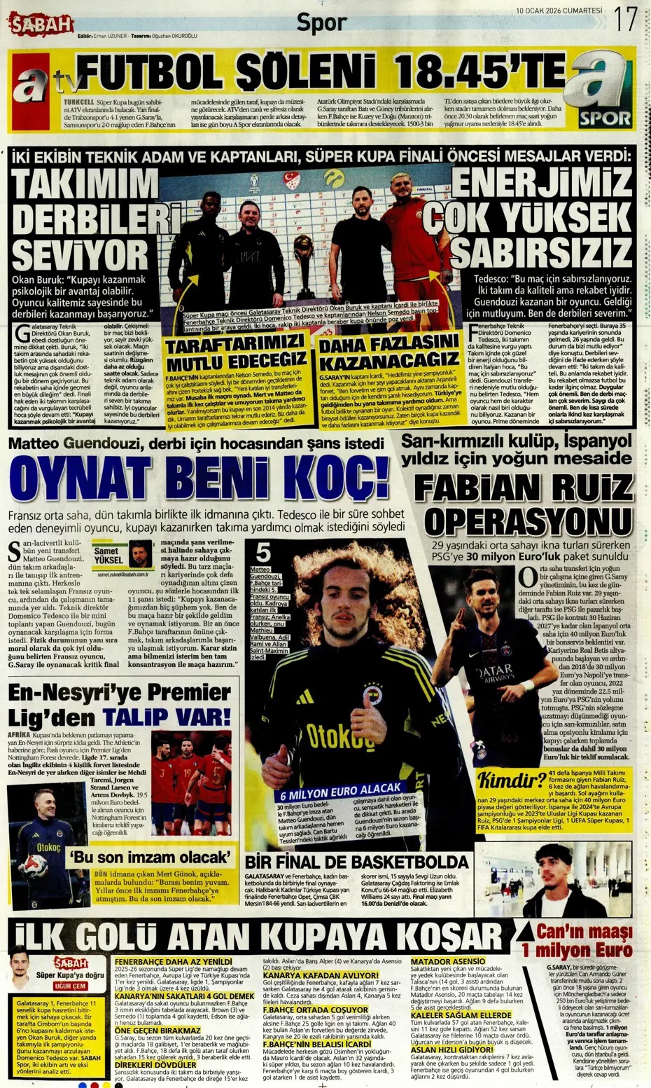 Bu gece fırtına kopacak! Spor basını bugün ne yazdı? (10 Ocak)