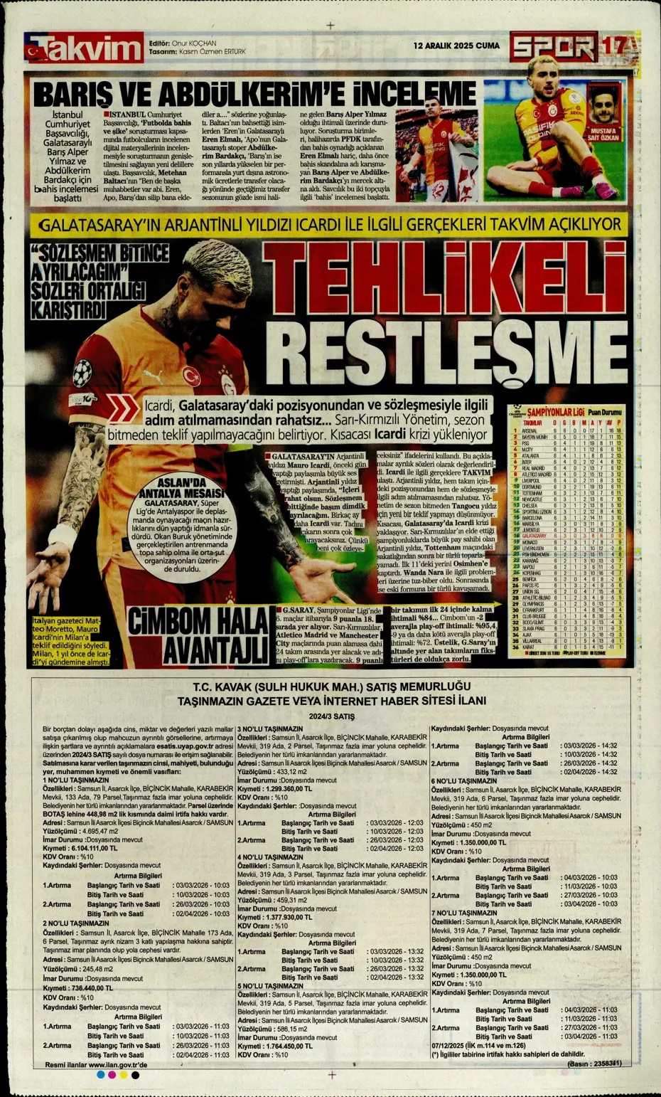 Bunun adı resital! Spor basını bugün ne yazdı? (12 Aralık)