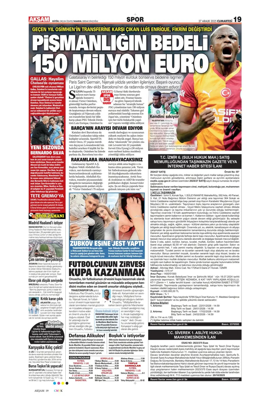 Erden Timur'a gözaltı! Spor basını bugün ne yazdı? (27 Aralık)