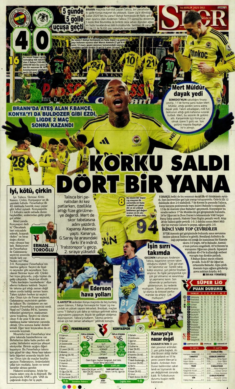 Fener 4 köşe! Spor basını bugün ne yazdı? (16 Aralık)