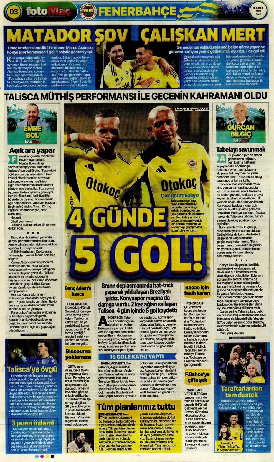 Fener 4 köşe! Spor basını bugün ne yazdı? (16 Aralık)