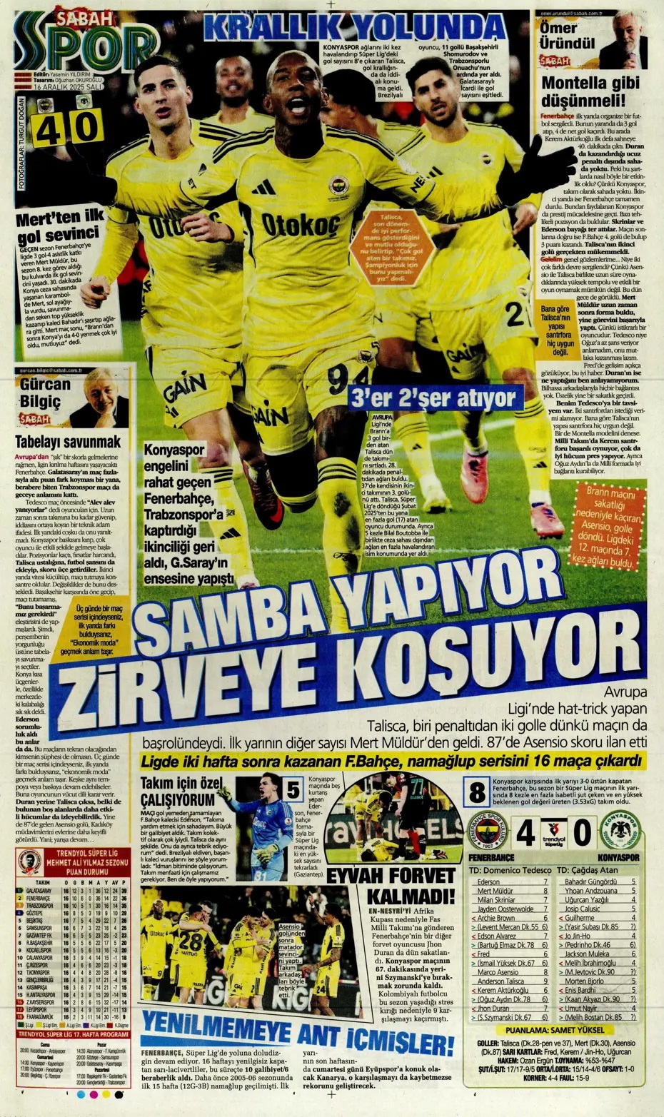Fener 4 köşe! Spor basını bugün ne yazdı? (16 Aralık)