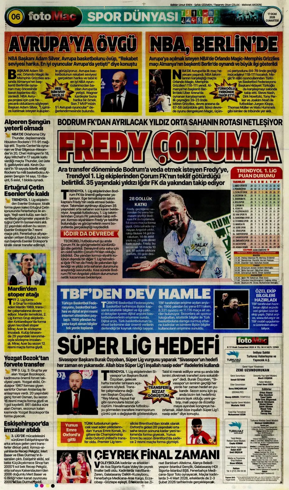 Fener Kanter içinde! Spor basını bugün ne yazdı? (17 Ocak)