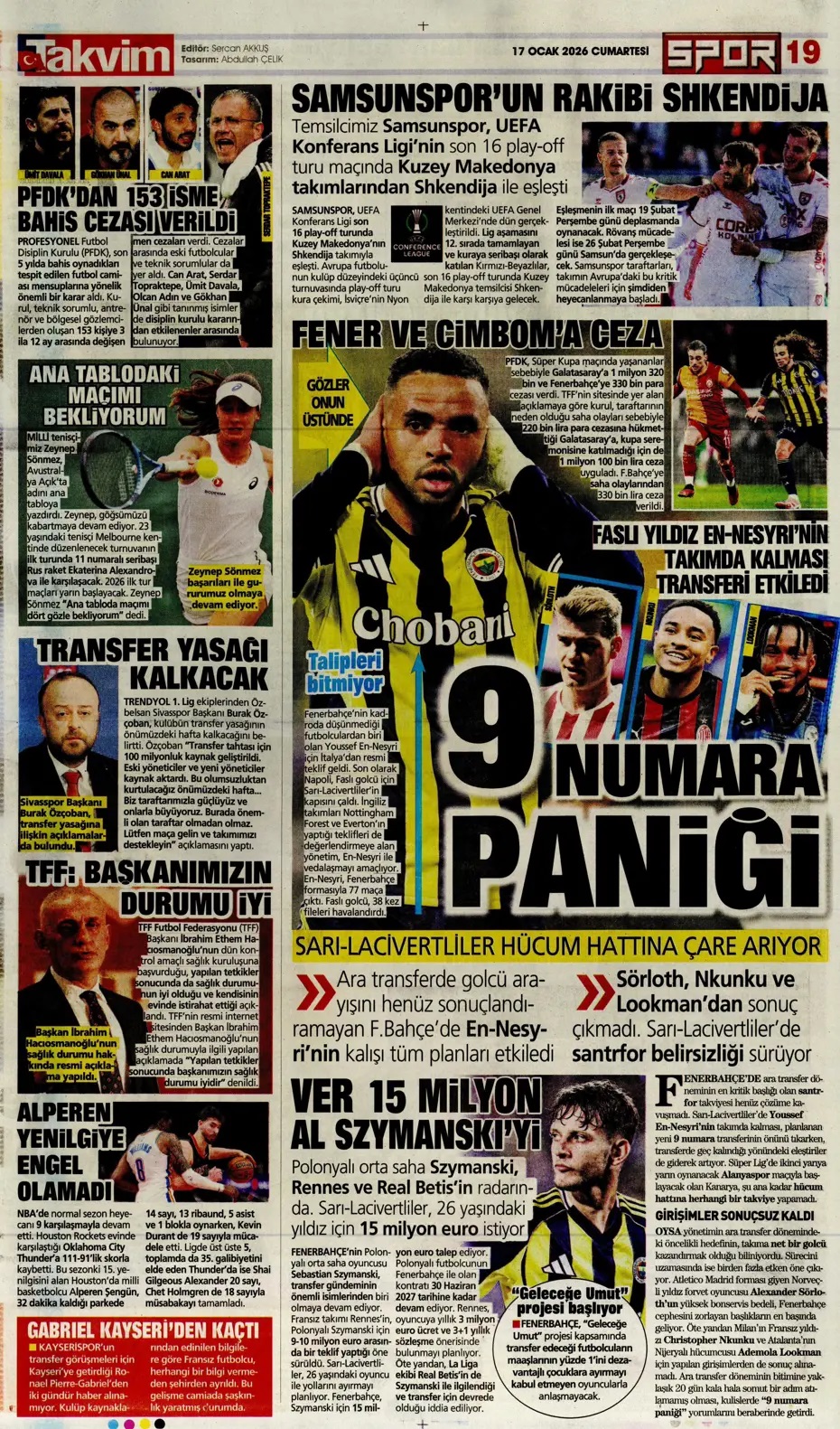 Fener Kanter içinde! Spor basını bugün ne yazdı? (17 Ocak)