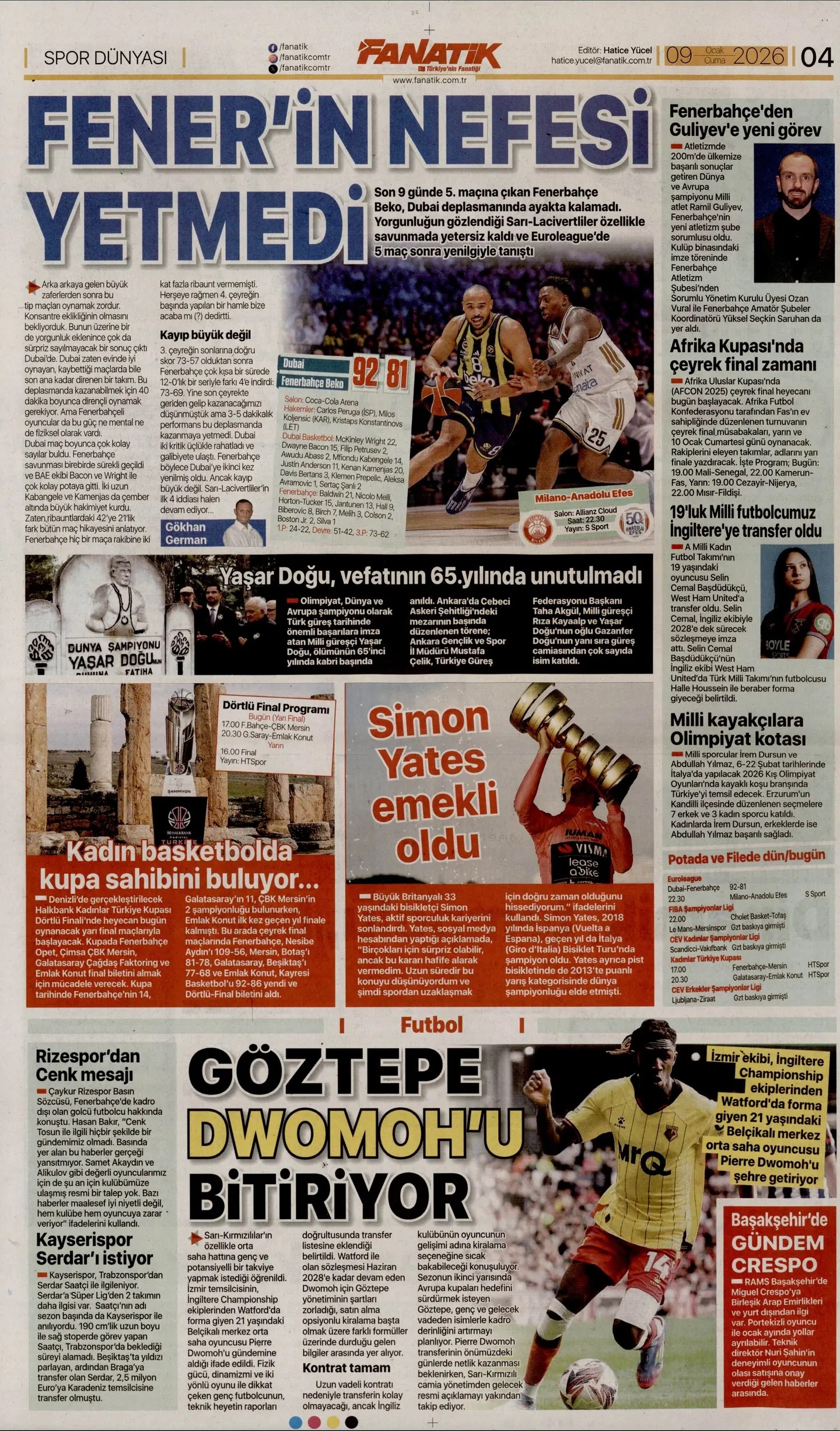 Fener'in yıldızı Guendouzi geldi! Spor basını bugün ne yazdı? (9 Ocak)