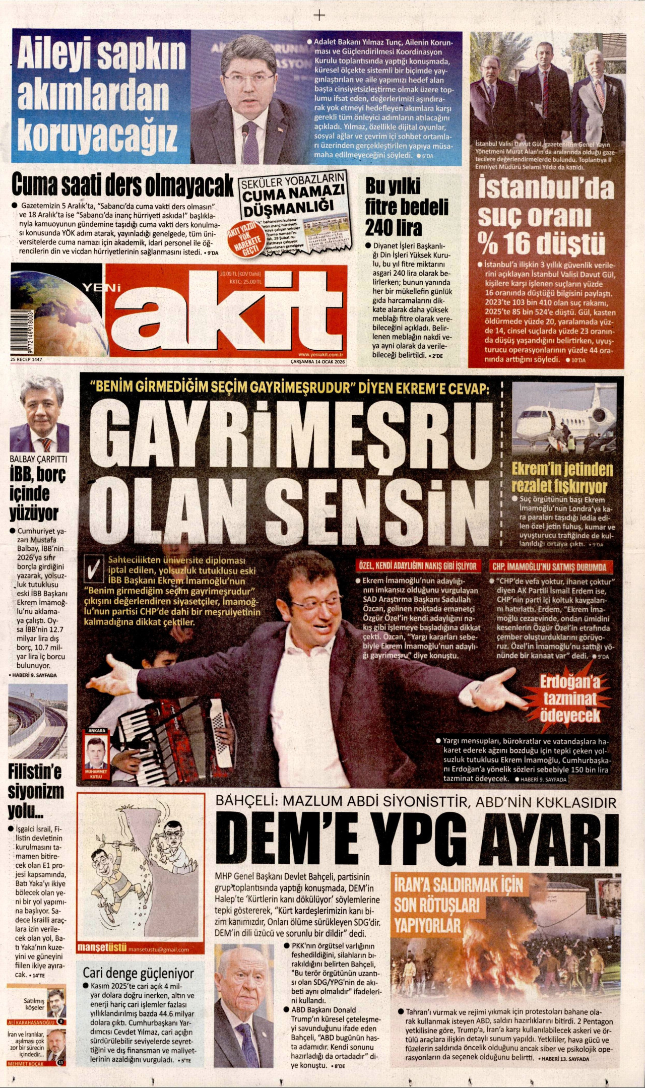 Gazeteler bugün ne yazdı? (14 Ocak)