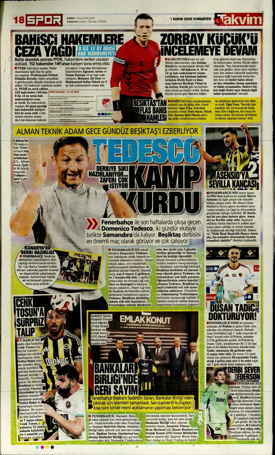 Mevzubahis futbolsa! Spor basını bugün ne yazdı? (1 Kasım)
