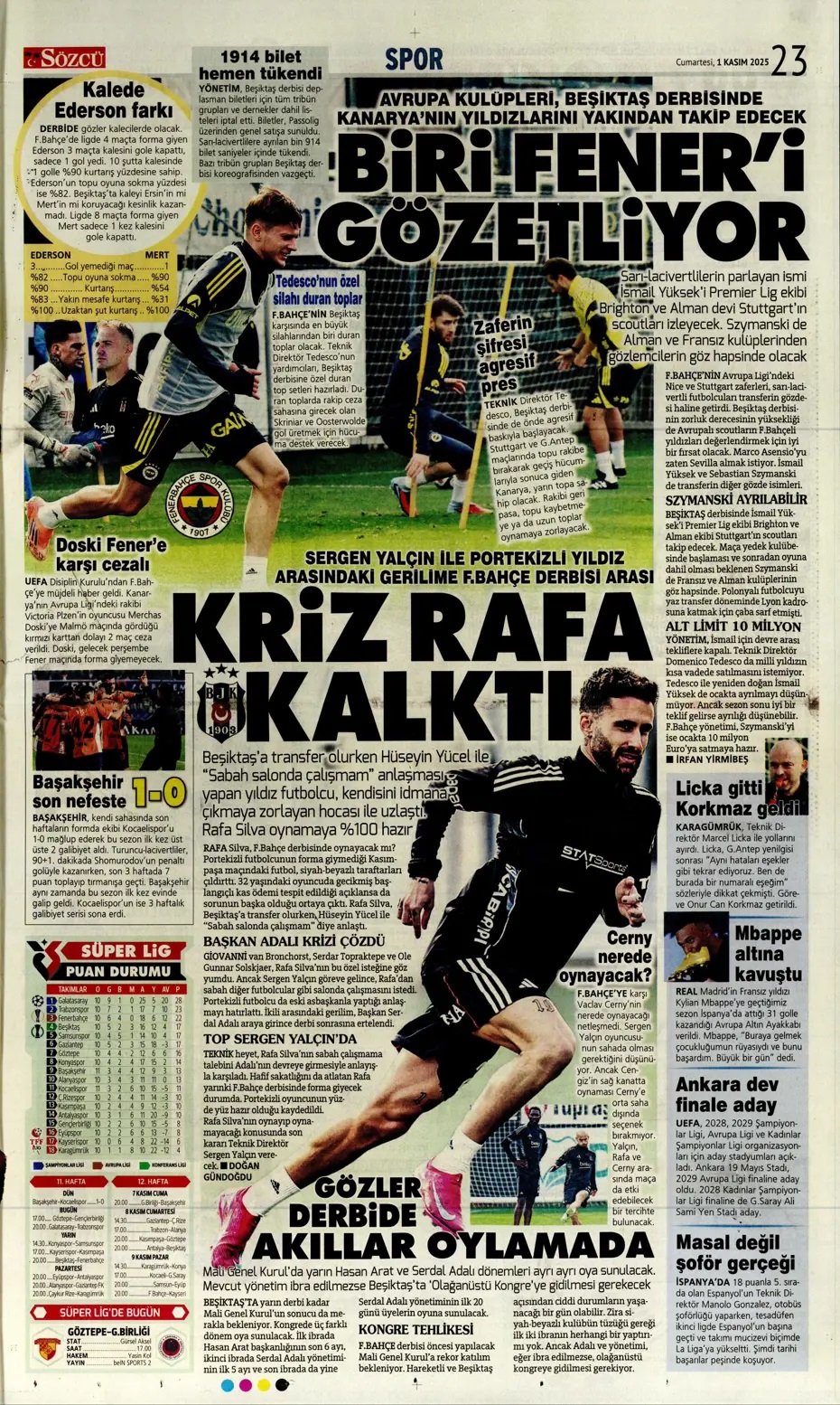 Mevzubahis futbolsa! Spor basını bugün ne yazdı? (1 Kasım)