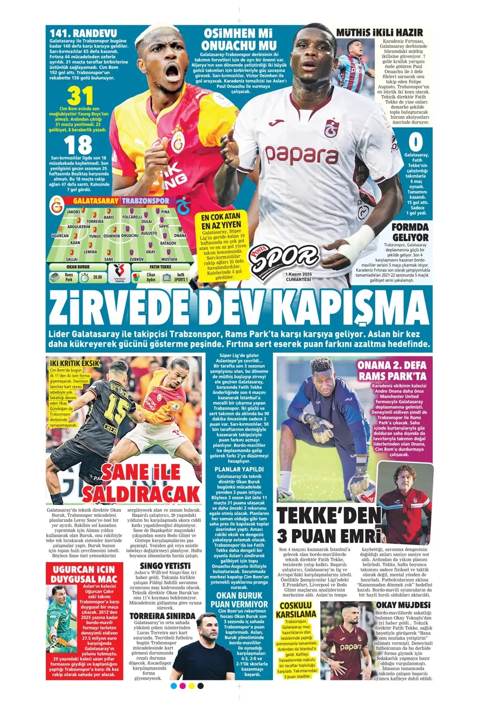Mevzubahis futbolsa! Spor basını bugün ne yazdı? (1 Kasım)