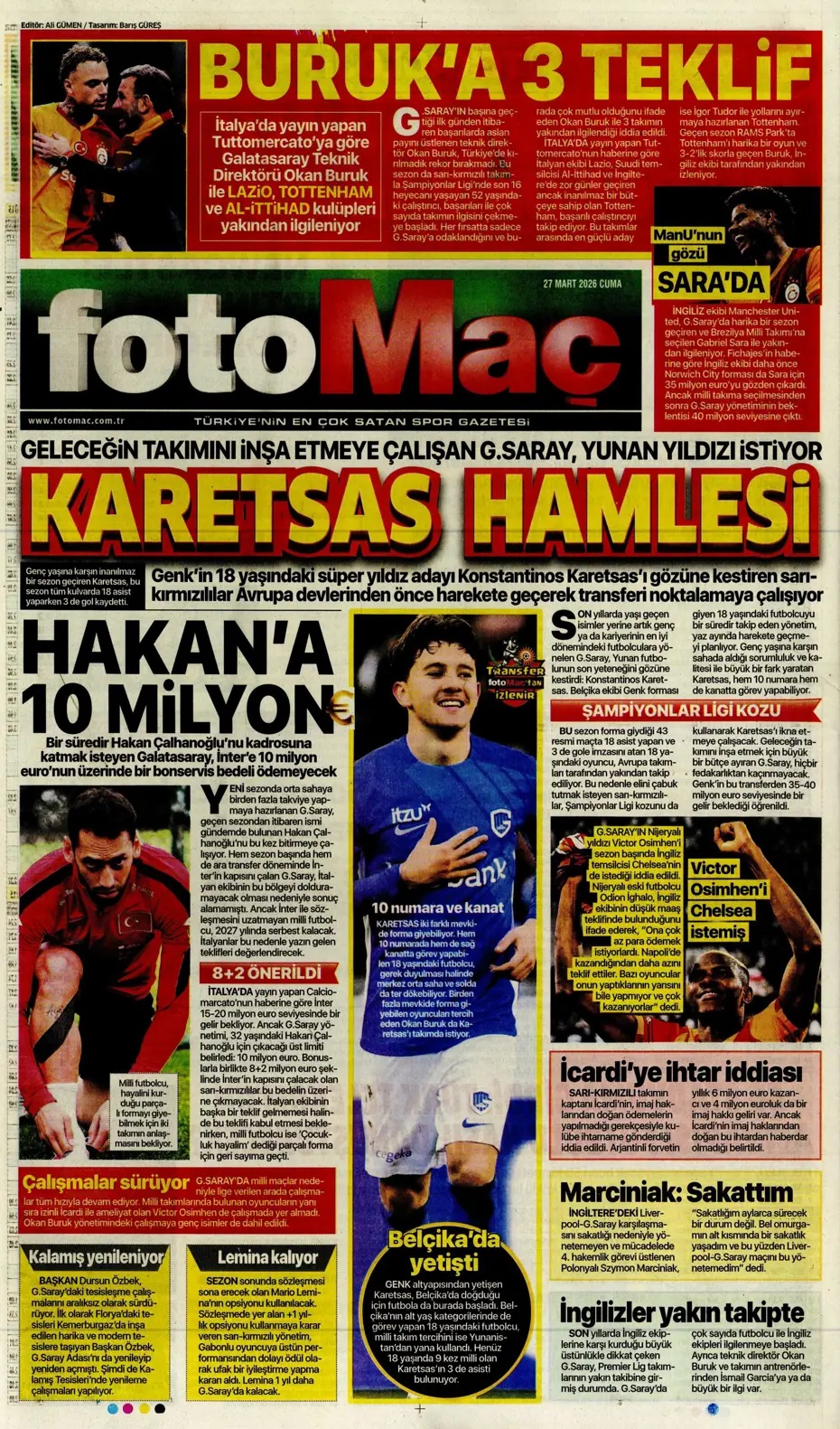 Sıradaki gelsin! Spor basını bugün ne yazdı? (27 Mart)