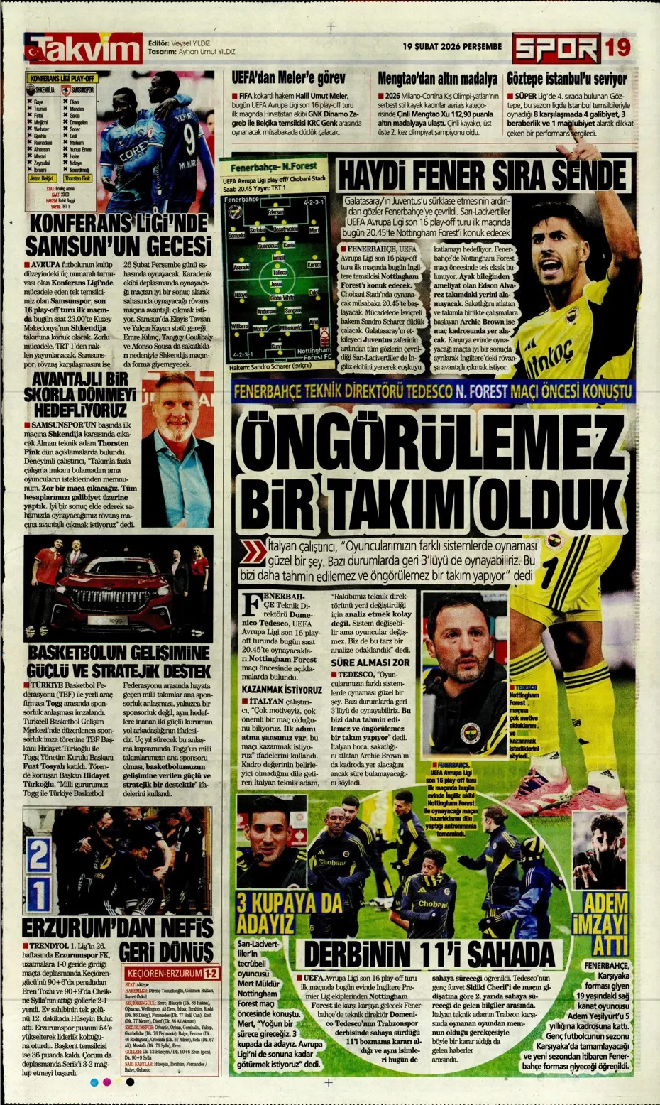 Tedesco: Her maçımız final! Spor basını bugün ne yazdı? (19 Şubat)