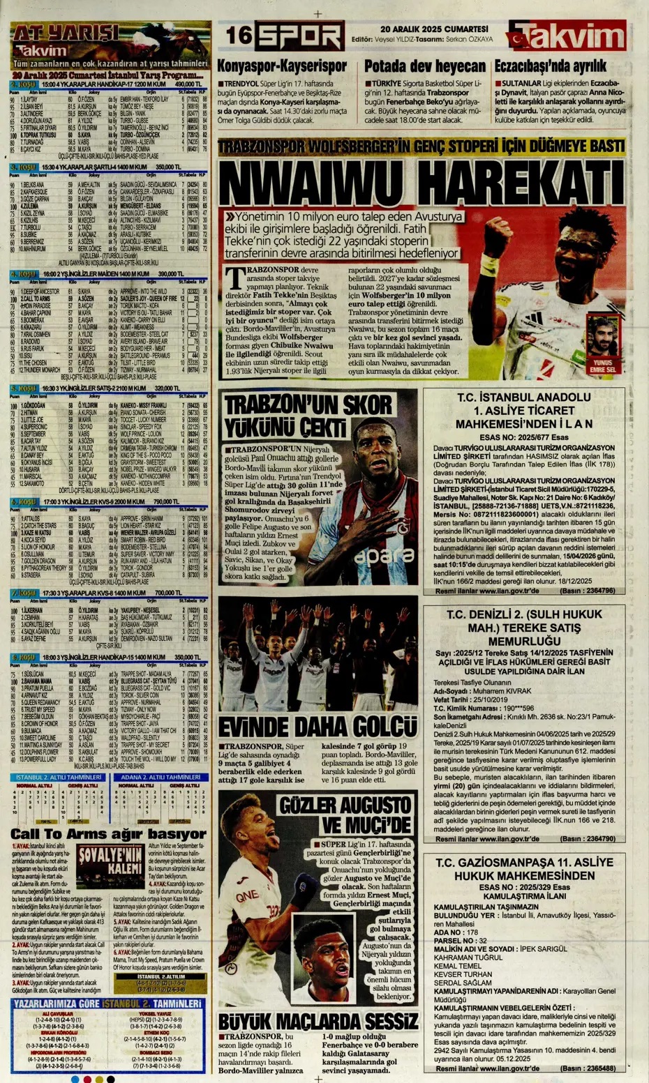 Yeni yıl hediyesi Veerman! Spor basını bugün ne yazdı? (20 Aralık)