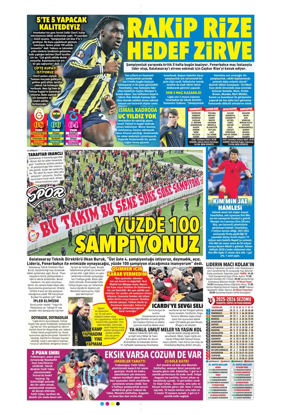 Yüzde yüz şampiyonuz! Spor basını bugün ne yazdı? (17 Nisan)