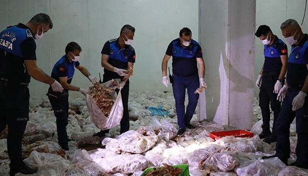Depoda yapılan incelemede, şoklanmış, etiketsiz ve izlenebilirliği belli olmayan poşetler içinde yaklaşık 10 ton tavuk ve tavuk ürünleri tespit edildi.