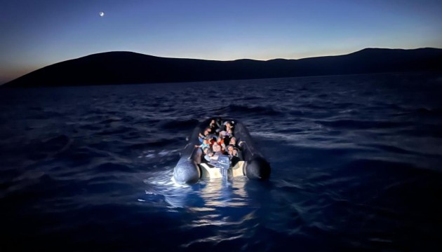 Ekiplerce, durdurulan lastik bottaki 24'ü çocuk 53 düzensiz göçmen yakalandı.