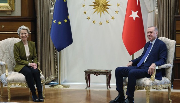 Cumhurbaşkanı Recep Tayyip Erdoğan, Cumhurbaşkanlığı Külliyesi'nde, AB Komisyonu Başkanı Ursula von der Leyen'i kabul etti.