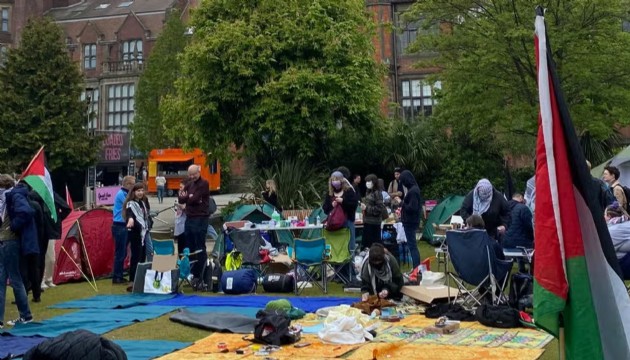 İngiltere'nin kuzeyindeki Newcastle Üniversitesinde "Newcastle Apartheid off Campus" adlı grup, üniversitenin kampüsünde kamp kurduğunu ve saat 17.00'de (TSİ 19.00) günlük miting planladıklarını duyurdu.