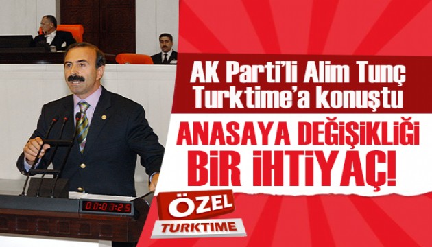 Türkiye Büyük Millet Meclisi 22. ve 26. Dönem Milletvekili TIP doktoru Alim Tunç Turktime'a yaptığı özel açıklamada özgeçmişinden, siyasi yaşamına, Anayasa değişikliği ve sağlık sistemimize kadar birçok konuya açıklık getirdi. Alim Tunç; Anasaya değişikliği ile ilgili "Biz sayın Cumhurbaşkanımıza her koşulda 2002' den beri destek veriyoruz. Elimizden geldiği kadarıyla destek olmaya çalışıyoruz. Teşkilatlarla birlikte çalışmalarımız var önerileri dile getirmeye çalışıyoruz.