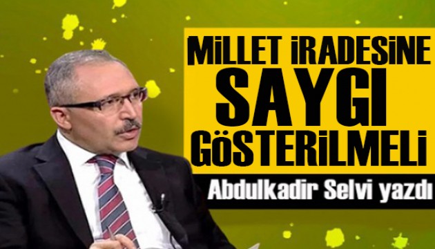 Hürriyet yazarı Abdulkadir Selvi 31 Mart seçimlerine ilişkin "Milletin iradesine saygı duymak gerekiyor. Milletin kararının başımızın üstünde yeri var. Milletin seçim sandığından verdiği mesajı da doğru okumalı. Seçim sonuçlarıyla kavga edilmez" dedi.