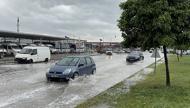 Yağış nedeniyle bazı evleri su bastı. Araç sürücüleri yağış nedeniyle caddelerde ilerlemekte güçlük çekti.