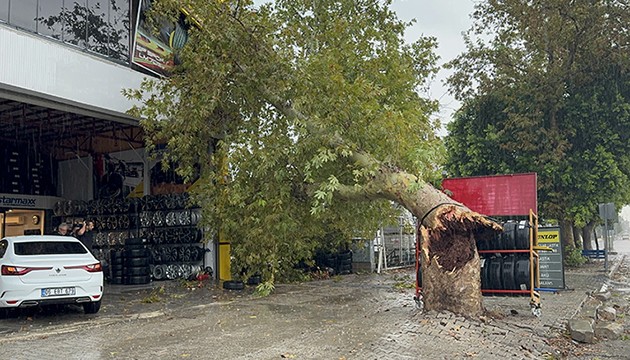 Öte yandan, merkez Seyhan ilçesi Girne Bulvarı'ndaki ağacın devrilmesi sonucu iş yeri ve elektrik direği zarar gördü, elektrik teli koptu.