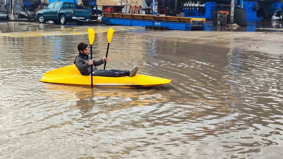 Öte yandan sağanak ilginç görüntülere de sahne oldu. Seyhan ilçesi Yeşiloba Mahallesi’nde bir vatandaş, suyla dolan sokakta kanoyla gezdi. Ova Mahallesi’nde ise bir kişi çocuğunu leğenin içine oturtarak sokakta yüzdürdü. Görüntüler sosyal medyada kısa sürede yayıldı. (DHA)