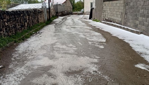 Taşlıçay'da aralıklarla etkili olan sağanak akşama doğru yerini doluya bıraktı.