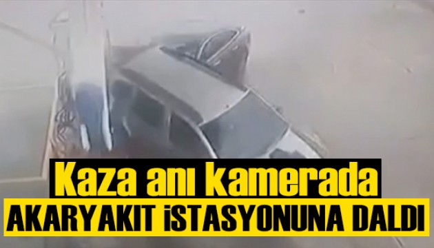 Yaralananın olmadığı kaza, akaryakıt istasyonunun güvenlik kamerasınca kaydedildi.