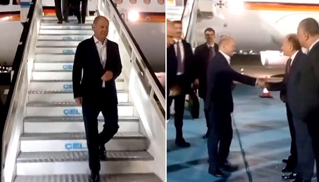 Scholz ve beraberindeki heyeti taşıyan uçak 22.03'te İstanbul Havalimanı'na indi.
