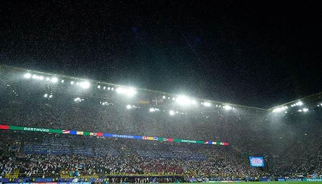 BVB Dortmund Stadı'nda oynanan karşılaşma sırasında fırtınayla beraber şiddetini artıran yağmur, oyunun durmasına sebebiyet verdi.