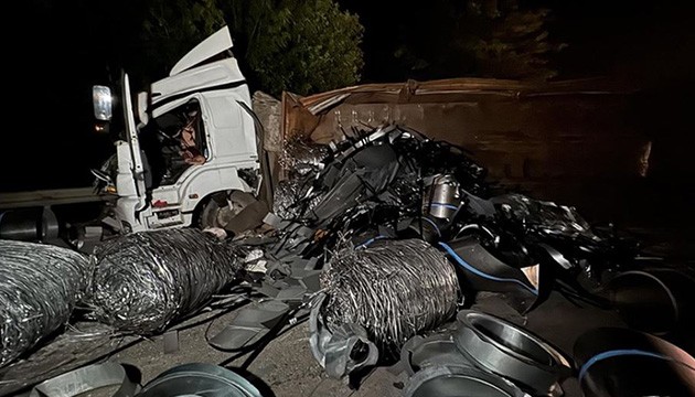 Her iki aracın dorsesinde bulunan malzemeler yola saçıldı.