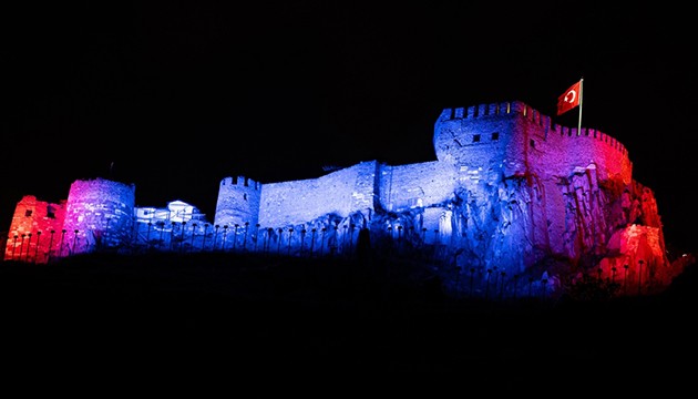 Bu kapsamda başkent Ankara'nın tarihi yapılarından Ankara Kalesi, yapılan özel çalışmayla jandarmanın renkleriyle ışıklandırıldı.