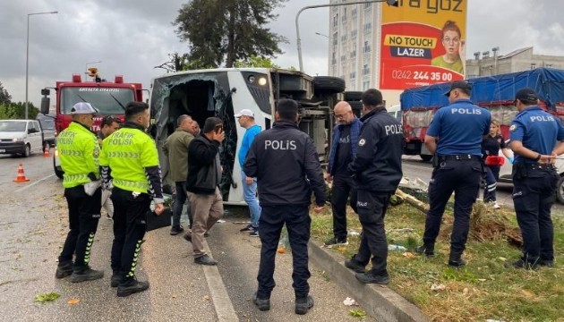 Antalya'nın Serik ilçesinde meydana gelen trafik kazasında, bir otelin personellerini taşıyan servis midibüsü devrilerek 19 kişinin yaralanmasına neden oldu.