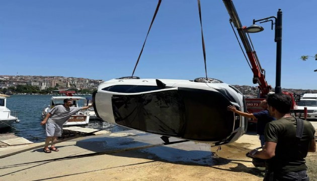 Fatih'te sürücüsünün sahilde park etmek için manevra yaptığı sırada denize düşen otomobil, sudan çıkarıldı.