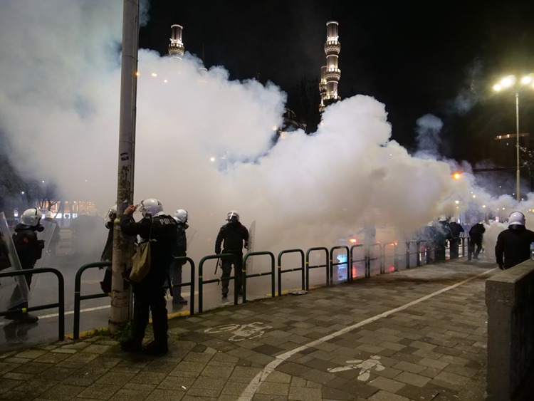 Polis, göstericilere göz yaşartıcı gaz ve tazyikli suyla müdahale etti.