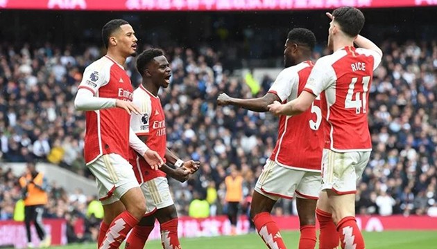Premier Lig'in 35. haftasında oynanan Kuzey Londra derbisinde Tottenham'a konuk olan Arsenal, Pierre-Emile Hojbjerg'in kendi kalesine 15, Bukayo Saka'nın 27 ve Kai Havertz'in 38. dakikada attığı gollerle galibiyete ulaştı.