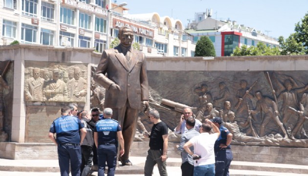 Ardından olay yerine çok sayıda polis ekibi sevk edildi. Ekiplerin yaptığı çalışma sonucu Atatürk Anıtı'nda 13 balta darbesi tespit edilirken, 2 şüpheli gözaltına alınarak, polis merkezine götürüldü.