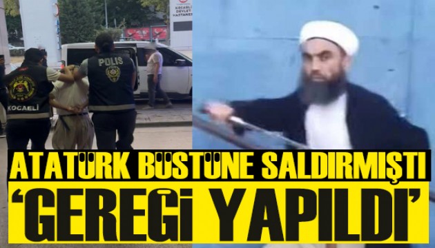 Olayın faili olduğu belirlenen M.Ç. isimli şahıs, ekipler tarafından suç aleti olan kesici aletle birlikte yakalandı. "Atatürk Aleyhine İşlenen Suçlar Hakkında Kanuna Muhalefet" suçlamasıyla gözaltına alınan şahıs, bugün Kocaeli Adliyesi'ne sevk edilecek.