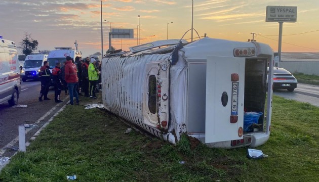 Aydın'ın Sultanhisar ilçesinde S.Y. idaresindeki fabrika işçilerini taşıyan minibüs, Aydın-Denizli kara yolu Yenipazar Kavşağı'nda devrildi.