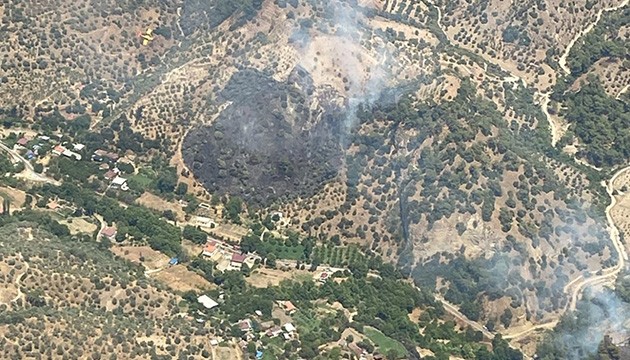 Aşağıkayacık Mahallesi'ndeki ormanlık ve zeytinlik alanda dün çıkan ve yaklaşık 150 dönüm alanın zarar gördüğü yangın kontrol altına alınmıştı. Yangın bir süre sonra elektrik tellerinden çıkan kıvılcımlarla yeniden büyümüştü.