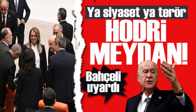 Ya siyaset ya terör, arası yoktur. Terörle siyaset arasında güvenli durak yoktur. Hem siyaset hem terör aynı kalıba giremez. Terör, demokrasinin DEM Partisi uzattığım eli sabote etmemeli. DEM'in sorumlu davranması hayrınadır. DEM Parti, aklını başına almalıdır. Kürt kardeşlerimizin terörle hiçbir bağı ve iltisakı yoktur. Türk-Kürt kardeştir. Araya giren bozguncular kanser hücresidir, kahrolmaya mahkumdur.