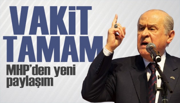 Milliyetçi Hareket Partisi (MHP), son dört gün boyunca sosyal medya hesabından her gün aynı saatte "Vakit Tamamdır - Söz Konusu Vatandır" başlıklı paylaşımlar yaparak dikkatleri üzerine çekti.