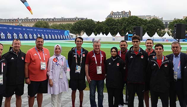 Les Invalides'te ise milli okçularla bir araya gelen Bakan Bak, burada da sporcularla bir müddet sohbet edip, antrenmanı izledi.