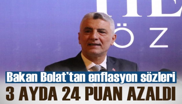 Bolat, önceliklerinin enflasyonla mücadele olduğuna dikkati çekerek, "Üç yılda ne pahasına olursa olsun, enflasyonu inşallah yüzde 10'un altına, tek haneye indirmeyi başarmak istiyoruz. Enflasyon gerçekten adaletsizliği getiriyor, maalesef ticari ahlakı bozuyor. İstikrarın sağlanması noktasındaki adımlarımız başarılı olmaya başladı. Türk lirasına güven arttı. Türkiye'nin yine en büyük sorunlarından biri olan cari açığı, Allah'a şükür 15 ayda 57 milyar dolar açıktan ağustos itibarıyla 15 buçuk, 16 milyar dolara düşürdük. Döviz biriktirmeye başladık. Türkiye'nin ekonomisinin kırılganlığını azaltmış oldu. Dünyada yatırımcıların Türkiye'ye daha güvenle bakmasını sağlamış oldu. Allah'ın izniyle enflasyon, 3 ayda 24 puan azaldı. Haziran-ağustos arası üç ayda enflasyon 24 puan geriye geldi ve daha da hızlı geriye gelecek inşallah. Gelecek yıl bu zamanlarda yüzde yirmili rakamlarda yıllık enflasyonu görebileceğiz" diye konuştu.