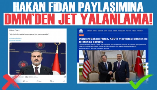 Dezenformasyonla Mücadele Merkezinden yapılan açıklamada, Bakan Fidan'ın, ABD Dışişleri Bakanı Antony Blinken ile gerçekleştirdiği telefon görüşmesinde, terör örgütü PKK/YPG'nin Suriye'de barınmasına izin verilemeyeceğini vurguladığı hatırlatıldı.