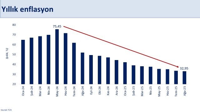 "Yıllık temel mal ve hizmet enflasyonundaki düşüş ağustosta da devam etti. Temel mal enflasyonu yüzde 19,8 gerçekleşirken hizmet enflasyonu 2022 yılı nisan ayından sonraki en düşük seviyesi olan yüzde 45,8'e geriledi. Sürdürülebilir büyüme ve toplumsal refah artışı için ön koşul olan fiyat istikrarını kalıcı şekilde sağlamak için mali disiplini ve yapısal adımlarımızı aynı kararlılıkla sürdüreceğiz."