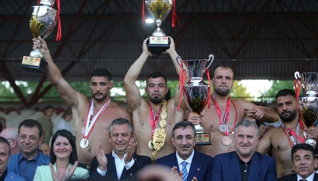CHP Genel Başkanı Özgür Özel ve Gençlik ve Spor Bakanı Osman Aşkın Bak da dereceye giren başpehlivanların madalyalarını ve kupalarını verdi.