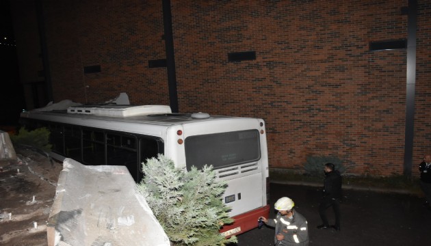 Belediye otobüsü şoförü Erhan Y. (37), kullandığı 35 R 0877 plakalı araçla direksiyon hakimiyetini kaybederek beton bariyerleri aştı ve alışveriş merkezinin bahçesine düştü.